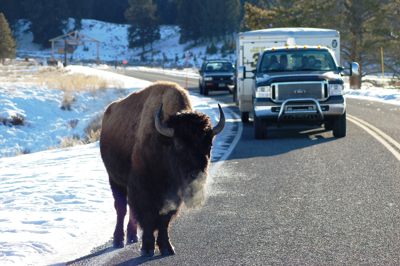 Have you ever been drivin down the road and a big buffalo decides to cross? Or walk in front of your car?