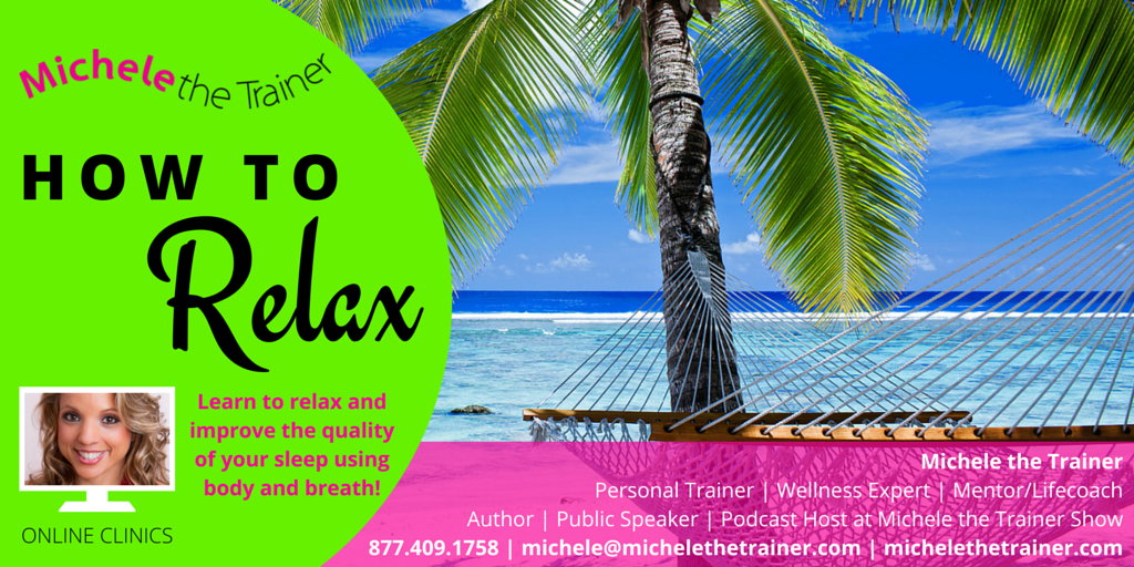 Please email me Michele@MicheleTheTrainer.com or give me a call to today 877-409-1758 and let’s set up an appointment to begin to teach you one of life’s most important survival skills, relaxation.