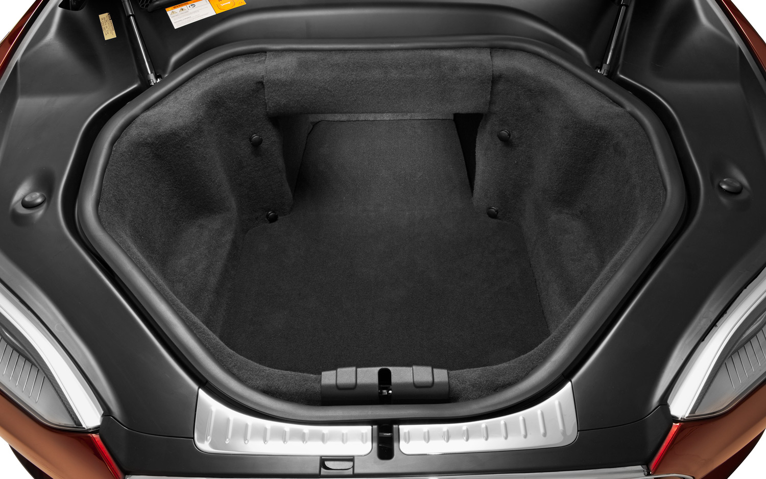 No gas gauge, no gas tank and no oil change! I should not have been so shocked by all of this (since I drive a hybrid) but it was different. I suppose this was my first 100% electric vehicle adventure. It’s funny to see just a battery like on your phone on the dashboard instead of a gas gauge; yes a green battery when full! Without all of this dirty stuff it leaves space for a carpeted Frunk (a trunk under the front hood):